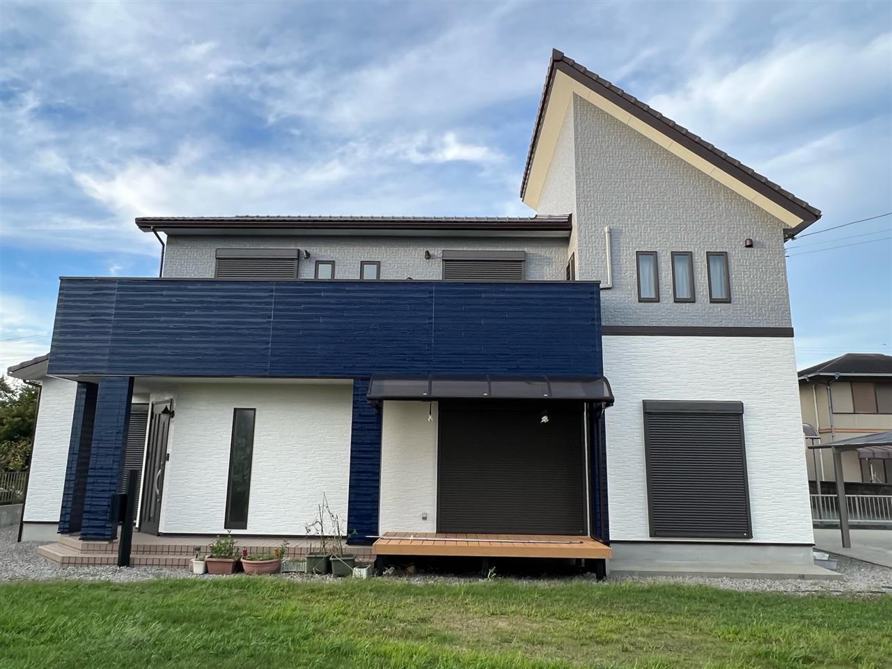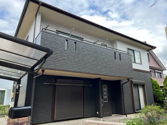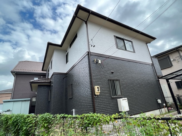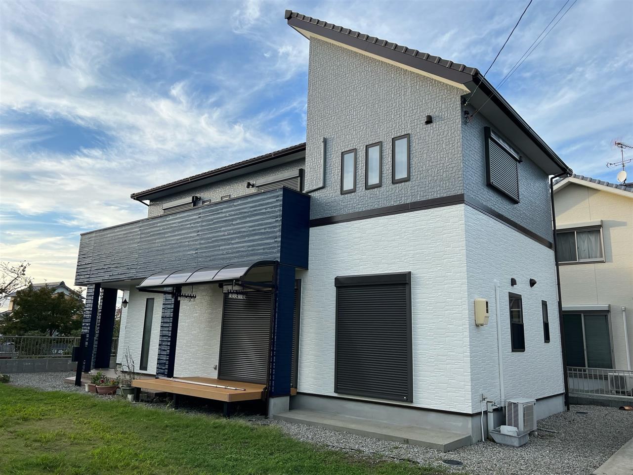 以前壁塗り替え工事をさせて頂きました、M様のご紹介、口コミにて工事を致しました。W様は外壁の色を変えたいとご相談が有りいくつかカラーシミュレーションをさせて頂き、弊社からも色のバランス等ご提案させて頂きました。斬新仕上りにW様も大変喜ばれていました。この度は塗装工事のご依頼誠にありがとうございました。~仕様材料~外壁塗装:無機塗料付帯部:無機塗料