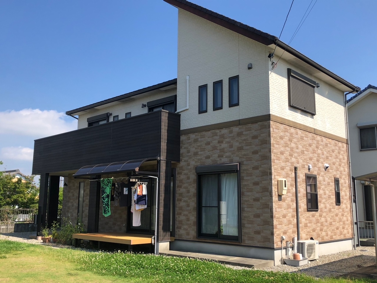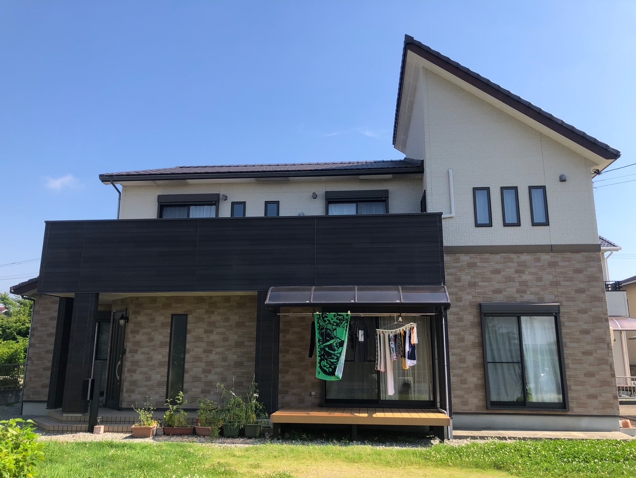 ホームページより口コミを頂きました。弊社への即決のご契約ありがとうございます。 今回初めての壁塗り替え工事でしたので、K様色悩まれていましたので、弊社ご提案の色をいくつかご用意させて頂きました。落ち着いた清潔感のある2色にて施工致しました。色のバランスにはK様も大変喜ばれていました。この度は外壁塗装工事のご依頼誠にありがとうございました。~仕様材料~外壁塗装:無機塗料屋根塗装:無機塗料