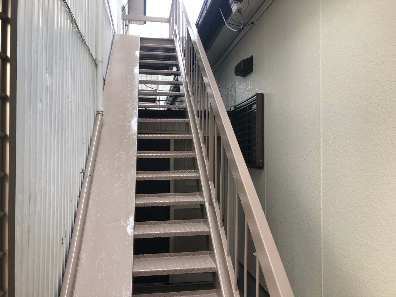 ホームページより口コミを頂きました。3社相見積もりとなりましが…弊社へのご契約ありがとうございます。今回は鉄階段塗装と屋根塗装になります。階段は錆の進行がかなり有りましたが、グラインダーにて錆を除去させて頂きました。屋根塗装はY様ご希望の濃い目のグレー色にて施工致しました。この度はご依頼ありがとうございます。~仕様材料~鉄骨塗装:ラジカル塗料屋根塗装:シリコン塗料