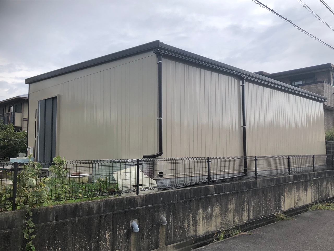 追加工事ありがとうございます。先日M様の工場の屋根塗装を行い、追加で自宅の車庫のご依頼を受けました。色は完全に弊社お任せと言うことでベージュ色を選択させて頂きました。次回はM様本宅の屋根塗装をアップさせていただきます。ご依頼ありがとうございます。~仕様材料~車庫塗装:無機塗料