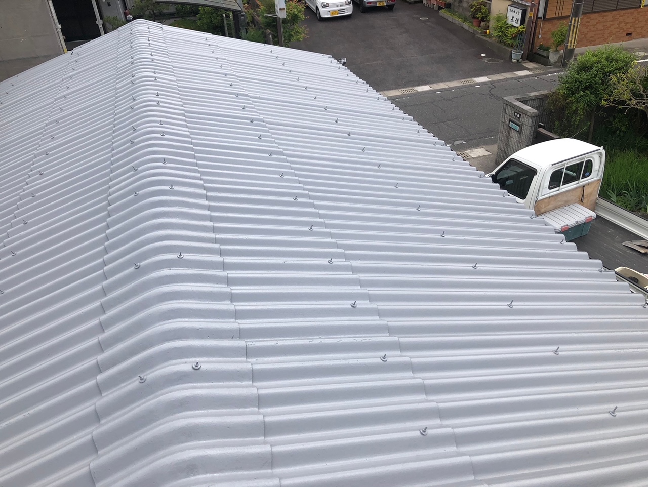ホームページより口コミを頂きました。I様の車庫の屋根塗装になります。M様ご希望のグレー色に施工致しました。同時に本宅外壁塗装の点検も行いました。(異常なし)次回、壁塗り替え工事を弊社にと…お約束して頂きました(*^^*)ご依頼ありがとうございます。~仕様材料~屋根塗装:ラジカル塗料