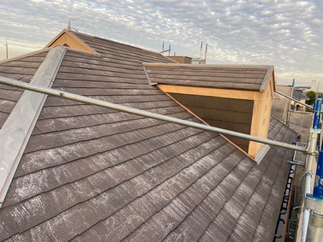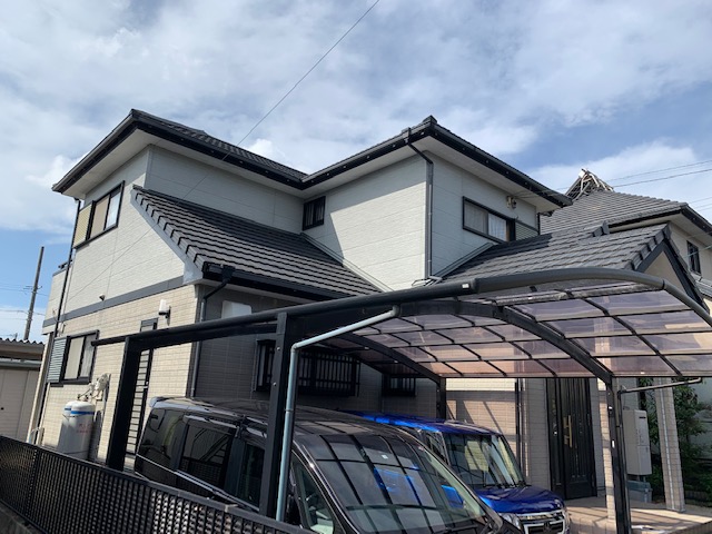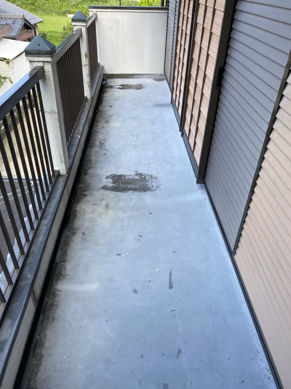 以前壁塗り替え工事をさせて頂きました、Y様のお隣になります。大雨が降ると少し雨漏りがしますとご相談が有り点検後施工致しました。外構塗装も傷んでおり水滴が侵入して塗膜が膨らんでいた為、全ての塗膜を撤去。しっかりと下地調整を行い工事完了。防水も厚膜仕様にて施工致しました。ご依頼ありがとうございます。~仕様材料~外壁塗装:ラジカル塗料防水:ウレタン防水