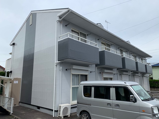 ホームページより口コミを頂きました。本宅も壁塗り替え工事をさせて頂きました。F様のアパートになります。今回、お色は弊社お任せと言うことで、外構塗装をグレー色に、アクセントは濃いグレー色を選択。色を変えるだけで見違えるほど変わった…とF様も大変喜ばれていました。ご依頼ありがとうございます。~仕様材料~外壁塗装:ラジカル塗料屋根塗装:ラジカル塗料