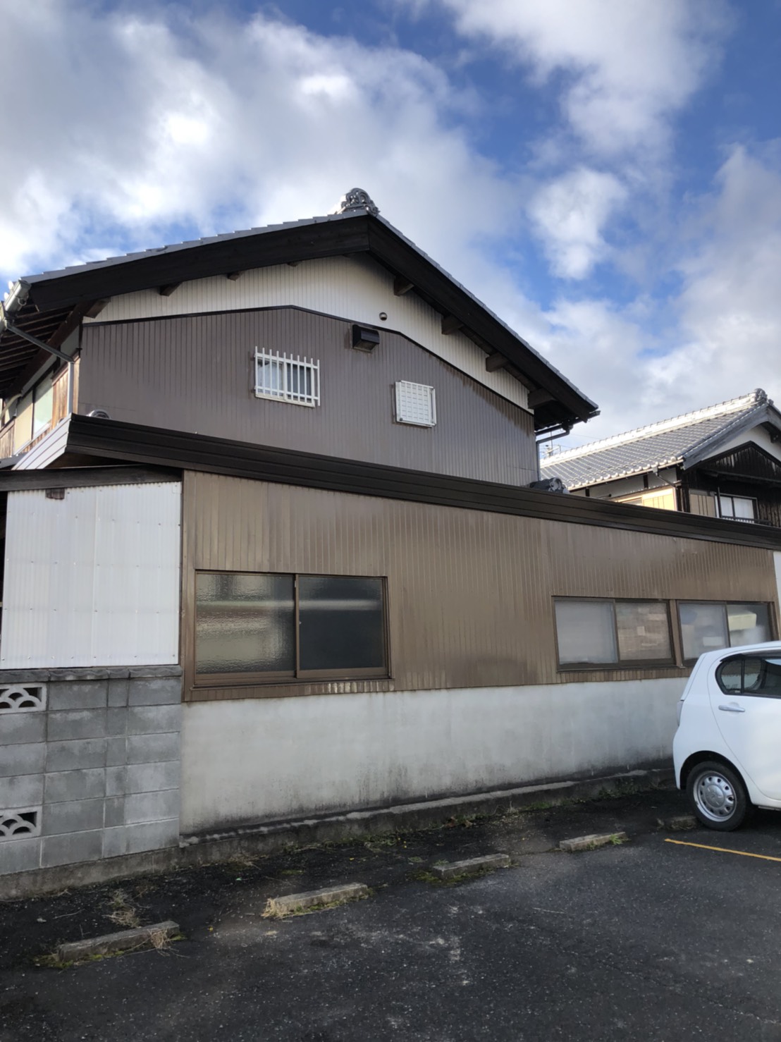ホームページより口コミを頂きました。今回5社の相見積もりとなりましたが、弊社でのご契約ありがとうございます。トタンの壁塗り替え工事になります。O様からトタンに合う色にしてください、とご要望が有りました。色の組み合わせやバランスは弊社にお任せください!壁をグレーベージュ色を選択、付帯部は濃いブラウンで塗装させて頂きました。O様もご納得で喜ばれていました(*^^*)ご依頼ありがとうございます。~仕様材料~外壁塗装:ラジカル塗料木部塗装:キシラデコール