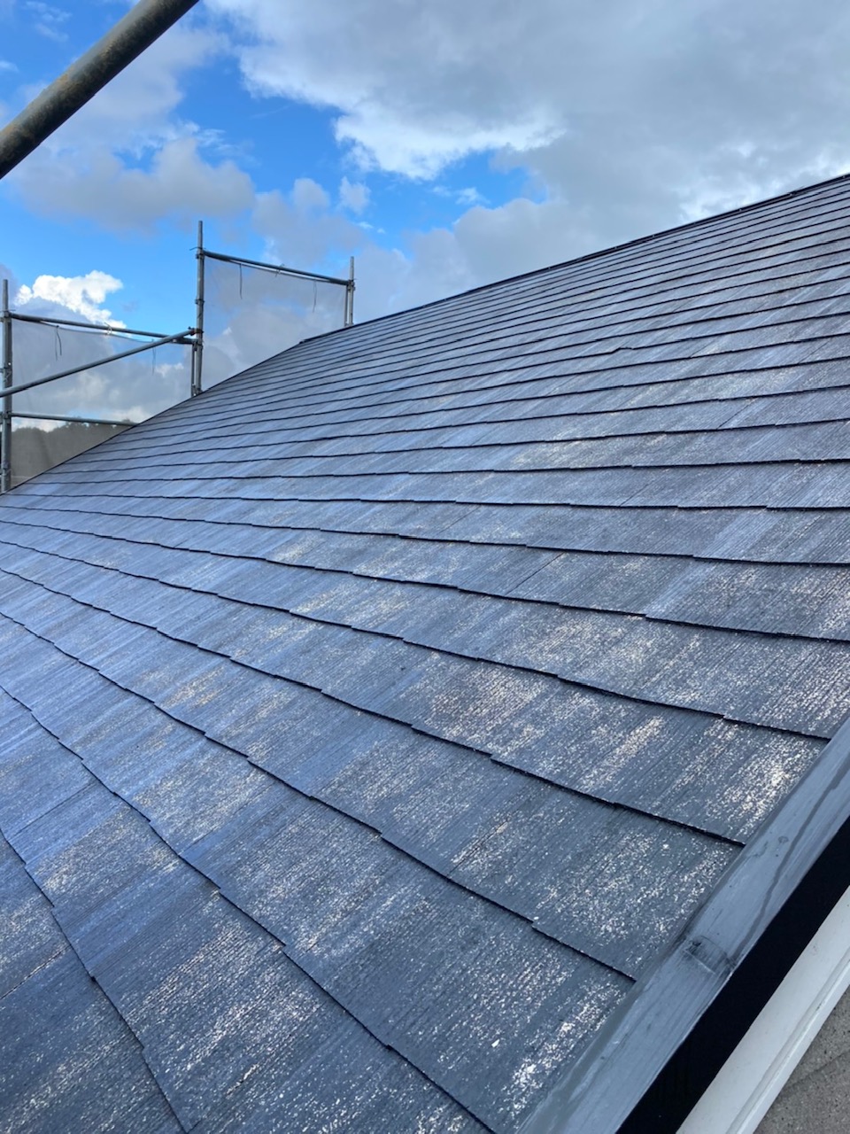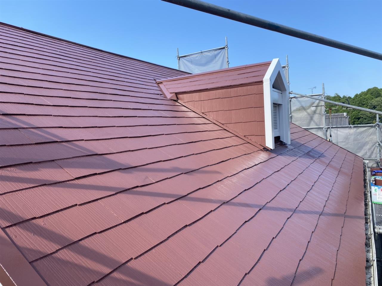 ホームページより口コミを頂きました。今回は屋根塗装と一部コーキング打ち替えの施工です。真夏比べて大分涼しくなりましたので快適に施工する事が出来ました。お色はT様ご指定の柔らかいブラウン色を選択でした。外壁塗装の点検も同時に行い一部補修させて頂きました。ご依頼ありがとうございます。~仕様材料~屋根塗装:遮熱シリコン塗料