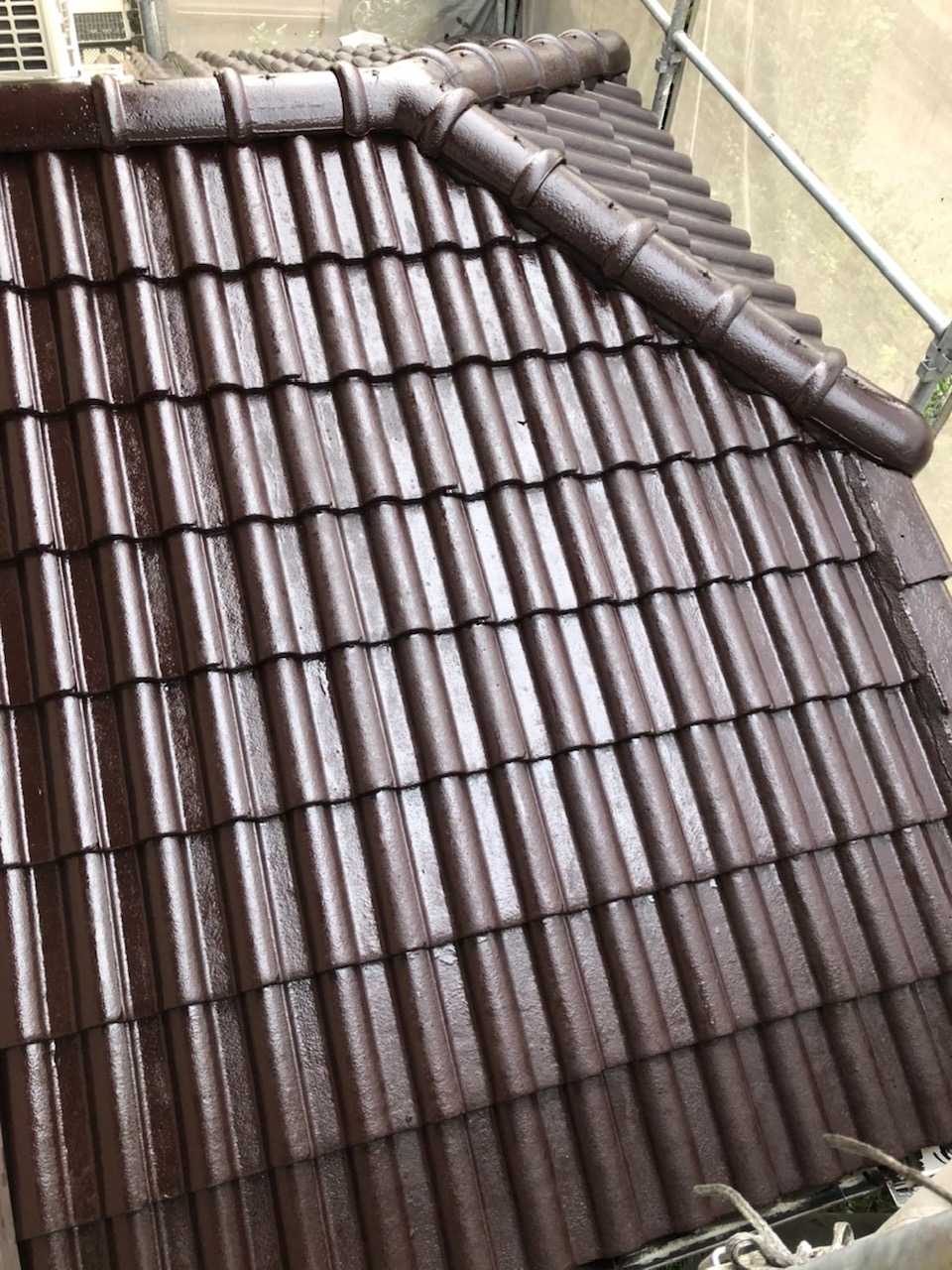 ホームページより口コミを頂きました。モニエル瓦の塗装になります。経年劣化が進んでいましたが…高圧洗浄でしっかりと洗浄後、モニエル瓦専用の塗料にて施工致しました。お色は外壁と合う様に、弊社ご提案の濃いブラウン色を選択。同時に外壁塗装の点検も同時に行いました。一部タッチアップの補修をさせて頂きました。ご依頼ありがとうございます。~仕様材料~屋根塗装:シリコン塗料