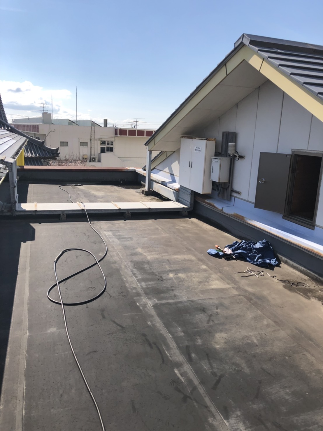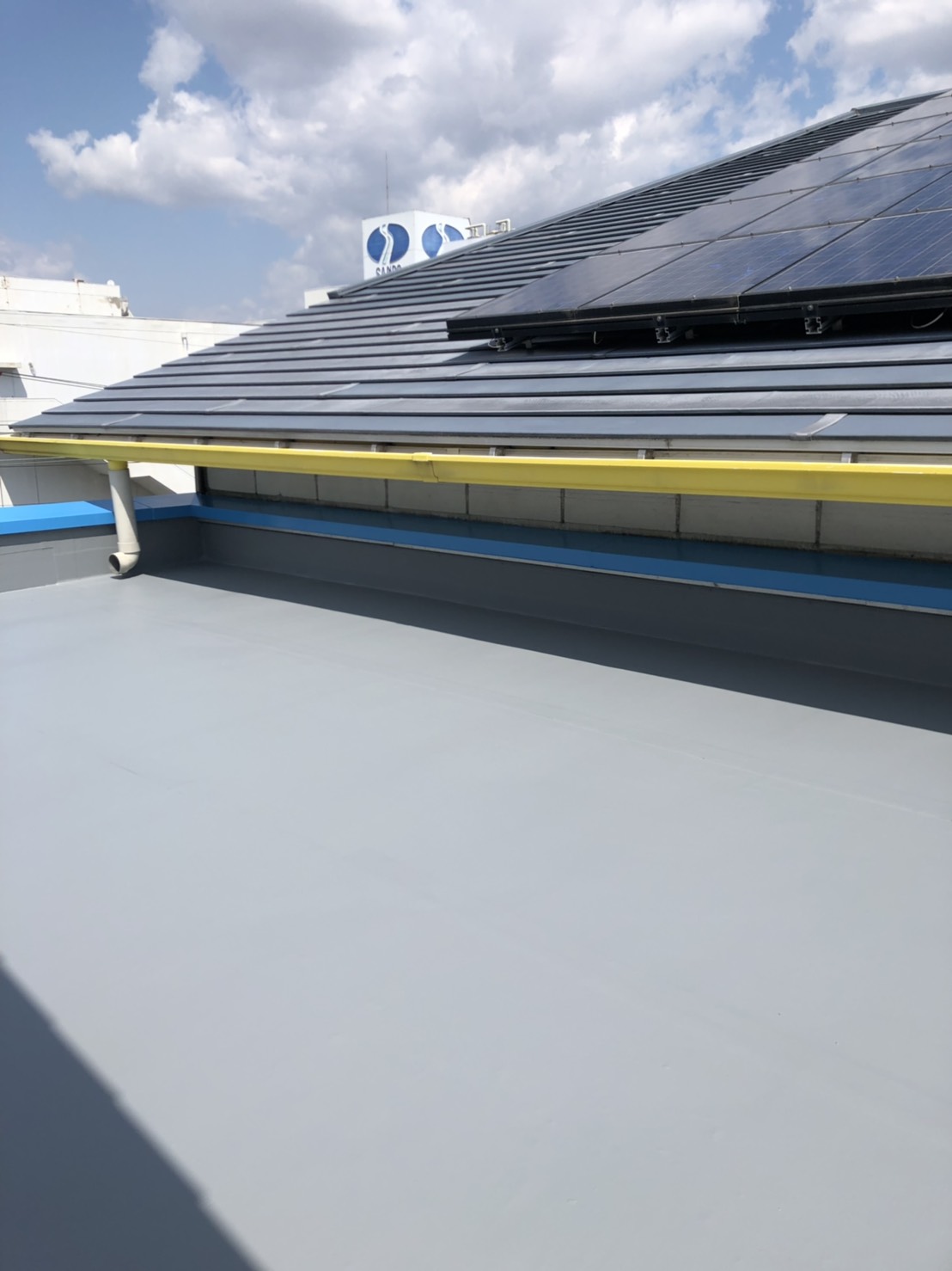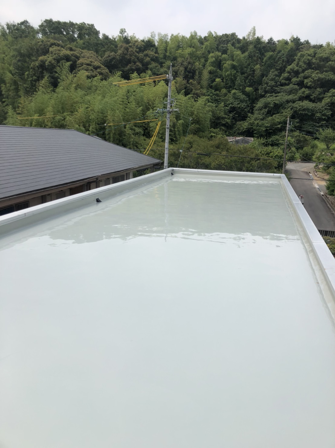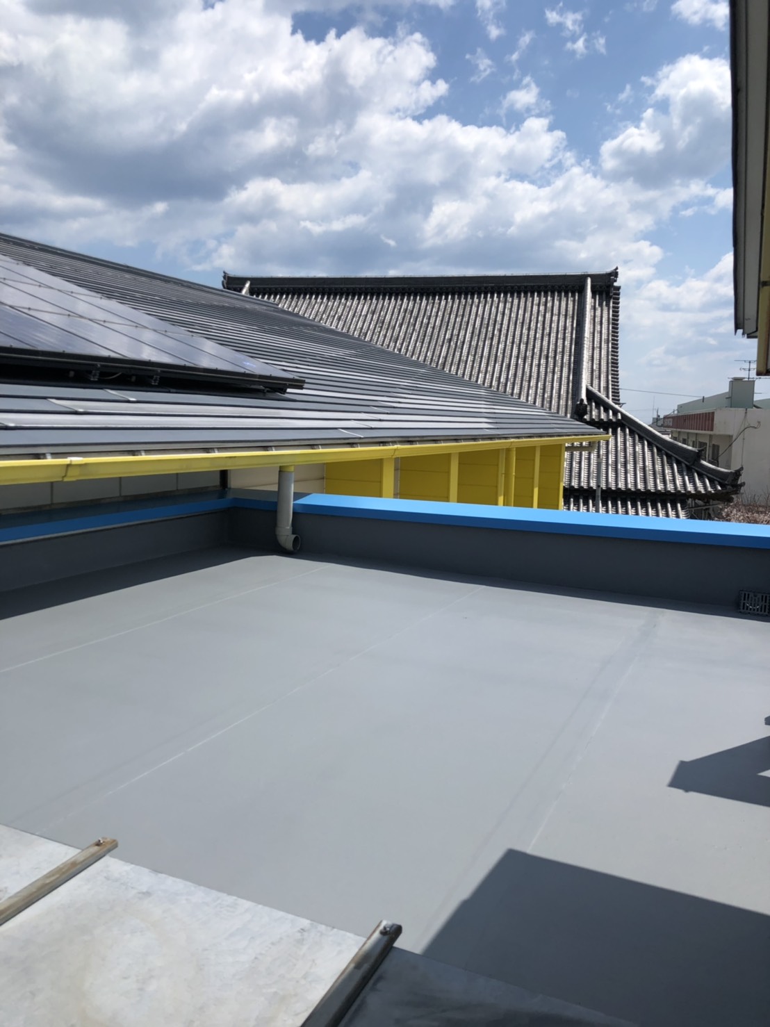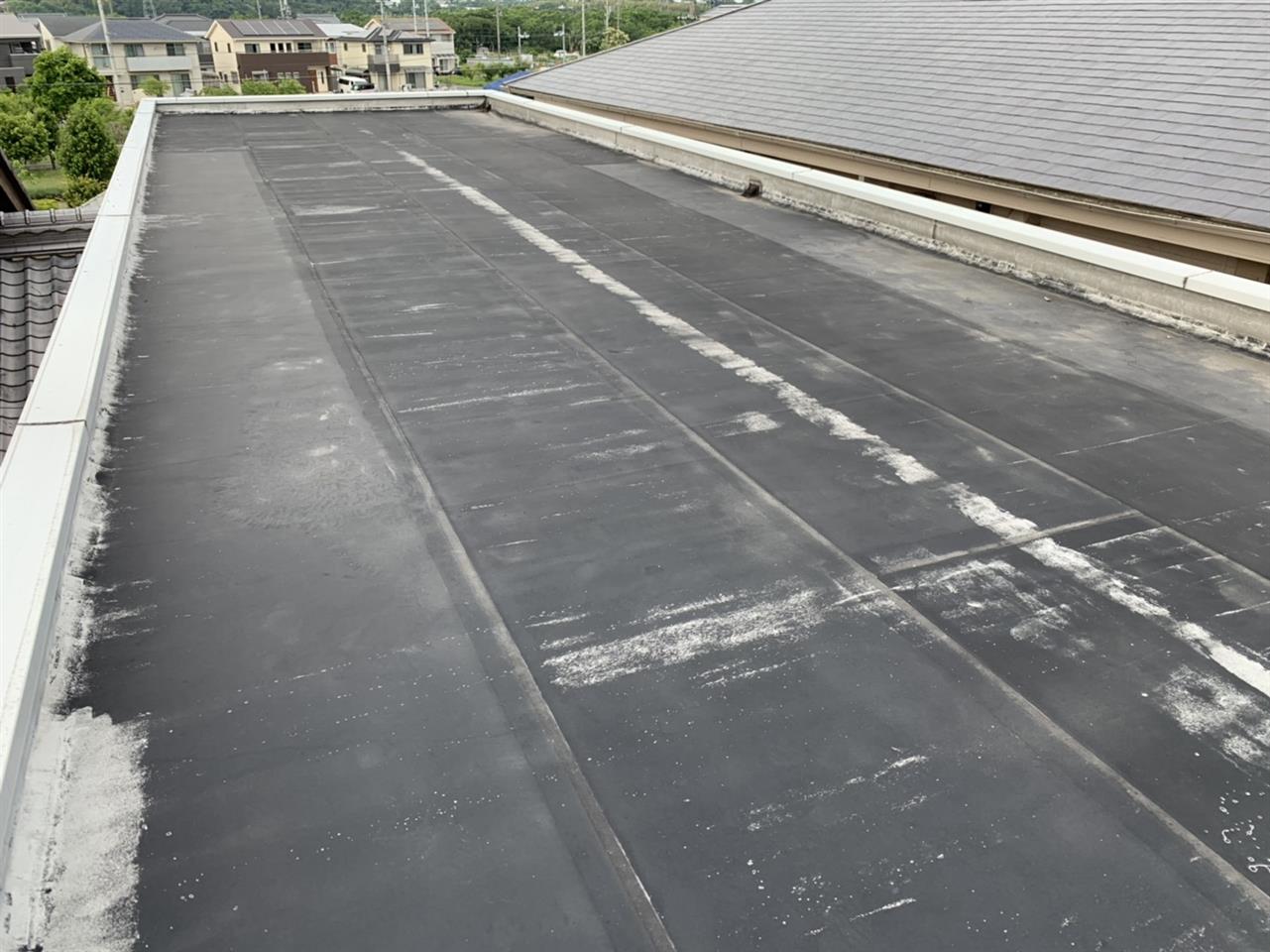 梅雨明けになり本格的に作業する事が出来ました…ホームページより口コミを頂きました。防水のご依頼が有り、雨漏りの点検を入念に行い特に異常ありませんでしたので今回はご予算に合わせて保護塗装のみさせて頂きました。同時に外壁塗装の点検も行いました(異常なし)次回は壁塗り替えをお約束して頂きました。ご依頼ありがとうございます。~仕様材料~防水塗装:軽歩行用防水塗料