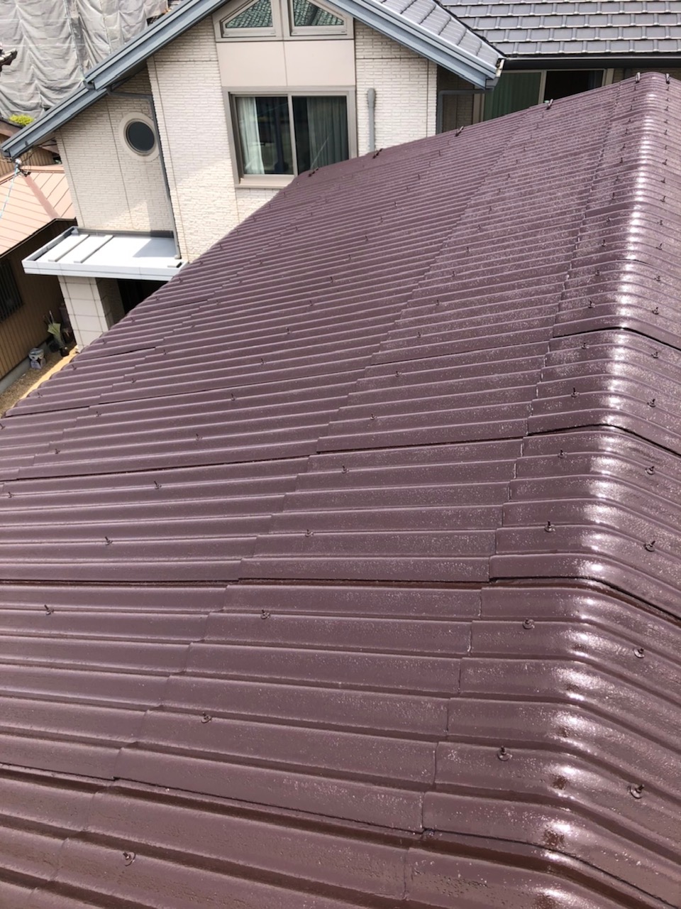 ホームページより口コミを頂きました。鈴鹿市のY様、今回は3社相見積もりと成りましたが…ナカシマ塗建に決めて頂きありがとうございます。施工内容は外壁塗装なしの屋根塗装と一部鉄骨塗装です。お色は弊社ご提案の壁に合う色ブラウン色を選択。屋根と鉄骨が綺麗になりましたので雨樋の塗装をサービスさせて頂きました。ご依頼ありがとうございます。~仕様材料~屋根塗装:ハイブリッドシリコン塗料屋根穴開き:コーキング処理鉄骨、雨樋:シリコン塗料