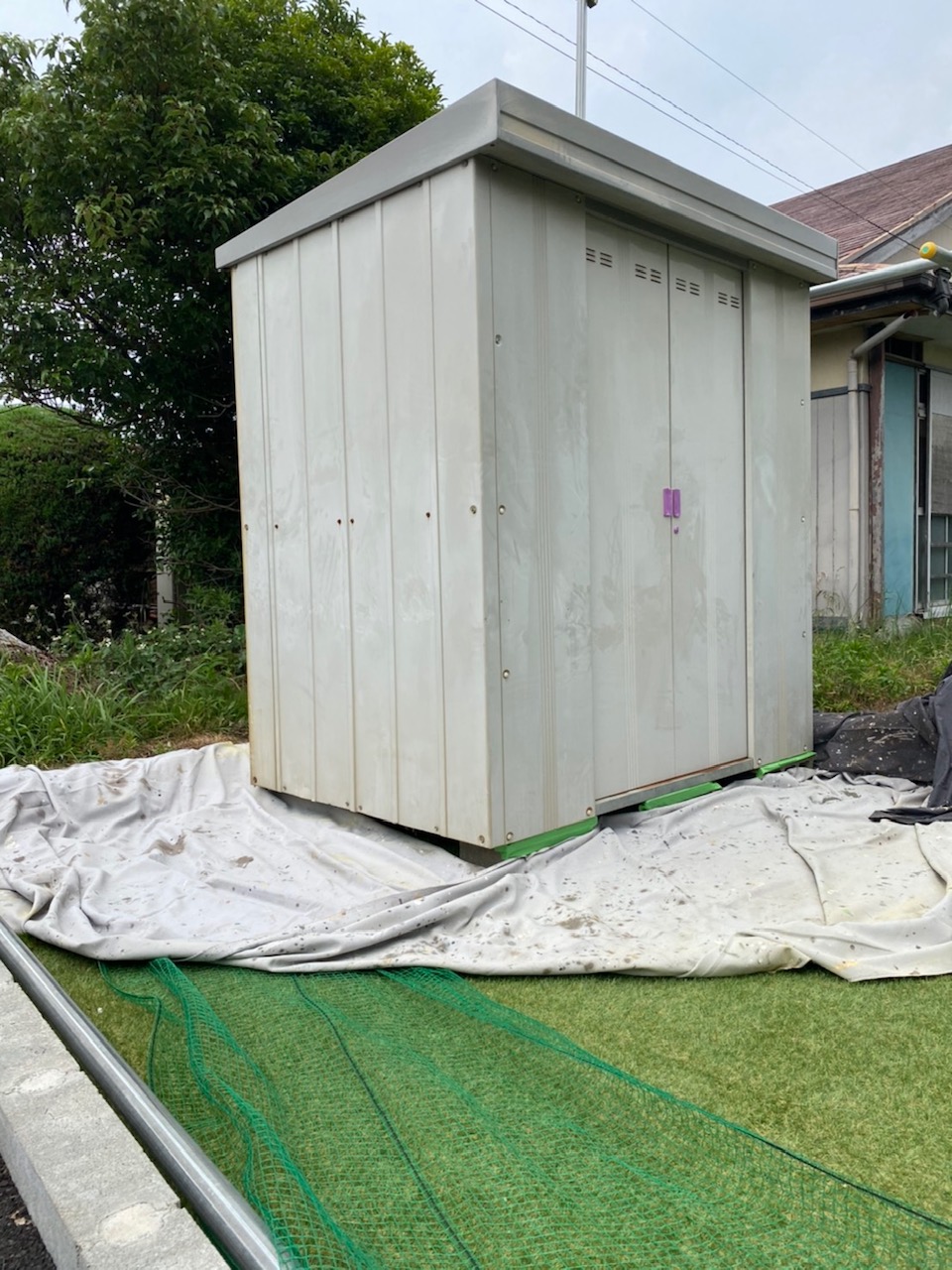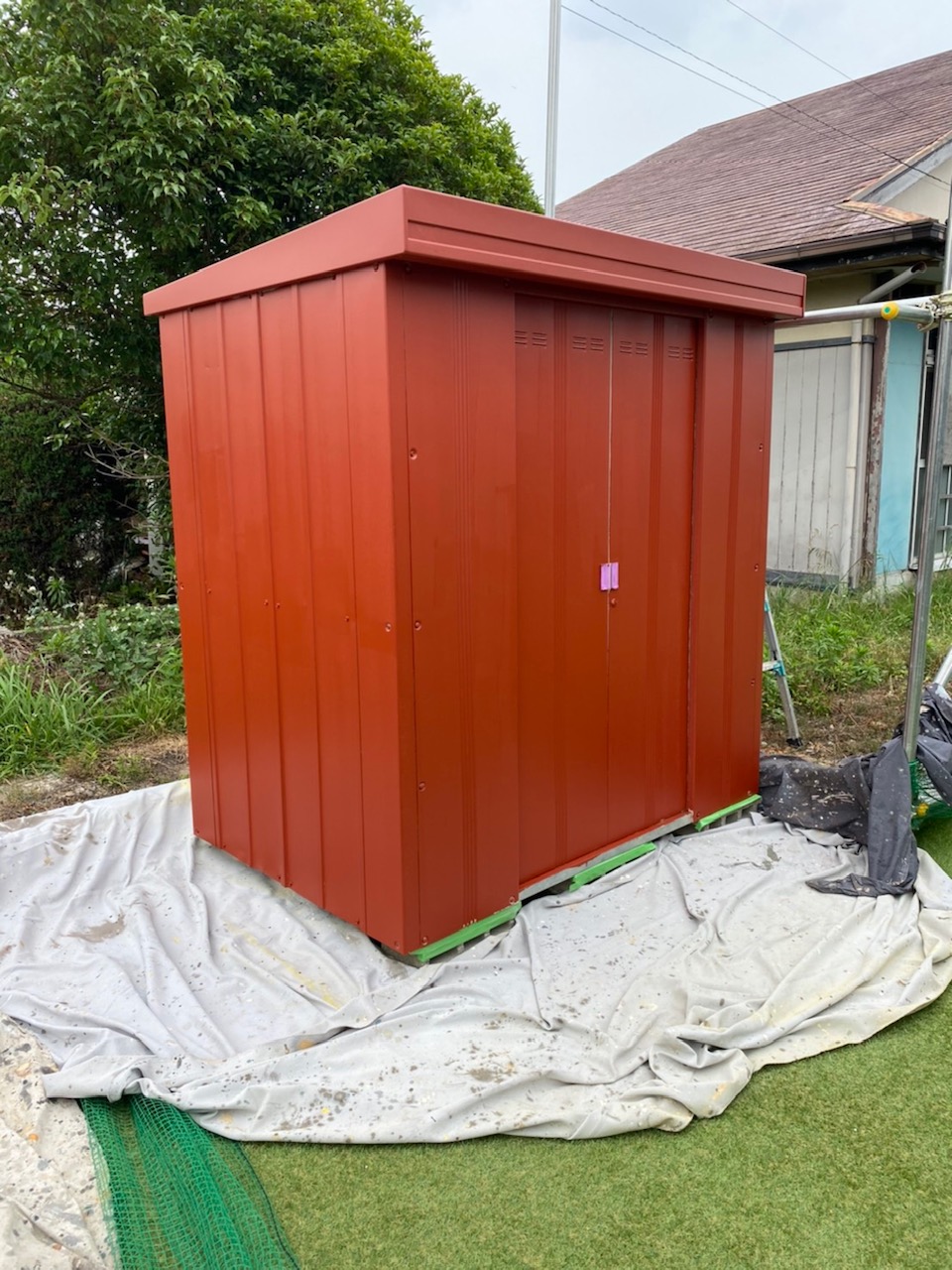 今回、従業員の口コミで…幼馴染みである鈴鹿市お住まいのK様、物置の屋根、壁塗り替えをご依頼されました。家を新築で建てたので物置も綺麗にしたいと要望があり施工させて頂きました。お色は弊社ご提案のネイビー色を選択。アクセントにパラペット部分にグレー色に。斬新な色に仕上りK様は大変ご満足でした。ご依頼ありがとうございます。~仕様材料~物置塗装:ハイブリッドシリコン塗料