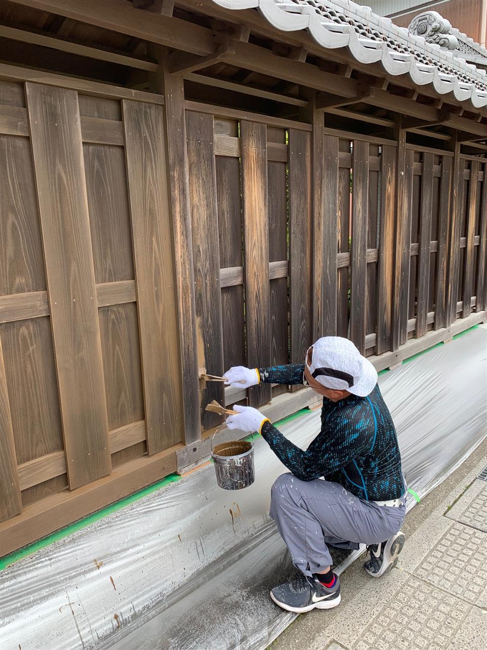 ホームページより口コミで外構の木部塗装です。天候にも恵まれ順調に作業する事が出来ました。南面、西面は紫外線等で痛みやすい為、弊社ご提案の木部保護塗料を選択、お色はH様希望の柔らかいブラウン色にて自然な仕上りに。本宅の外壁塗装も一部タッチアップ塗装。次は壁塗り替えをお約束して頂きました。ご依頼ありがとうございます。~仕様材料~木部塗装:ガードラック アクア
