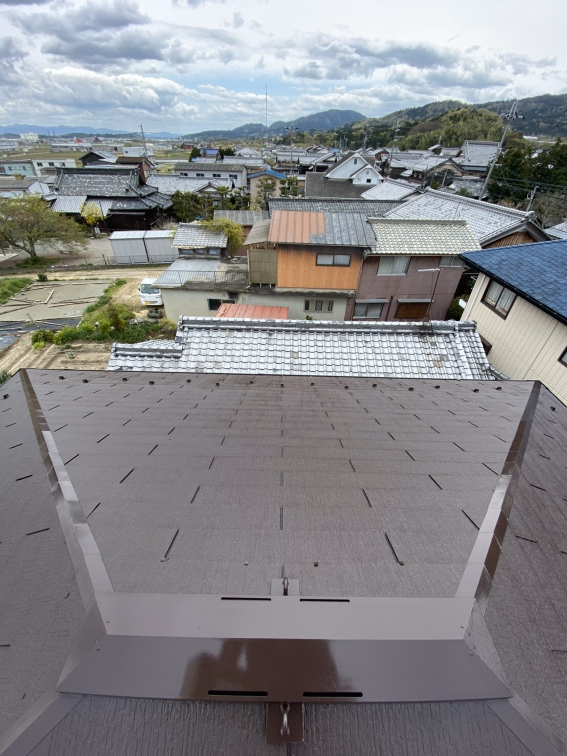 以前、外壁塗装工事をさせて頂きましたY様からの口コミで屋根塗り替え工事を行いました。25年塗装をされていない屋根の為大分経年劣化されていたので弊社ご提案の増膜仕様に致しました。通常3回塗りのところ今回は4回塗りの施工です。色はお客様のご要望通りブラウンにて仕上げました。ご依頼ありがとうございます。~仕様材料~屋根塗装:ハイブリッドシリコン塗料穴開き:防水テープ、コーキング処理