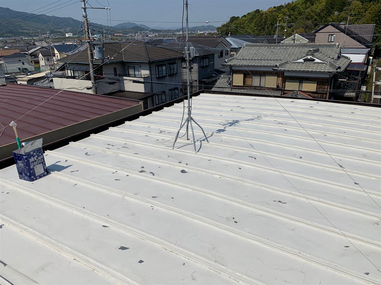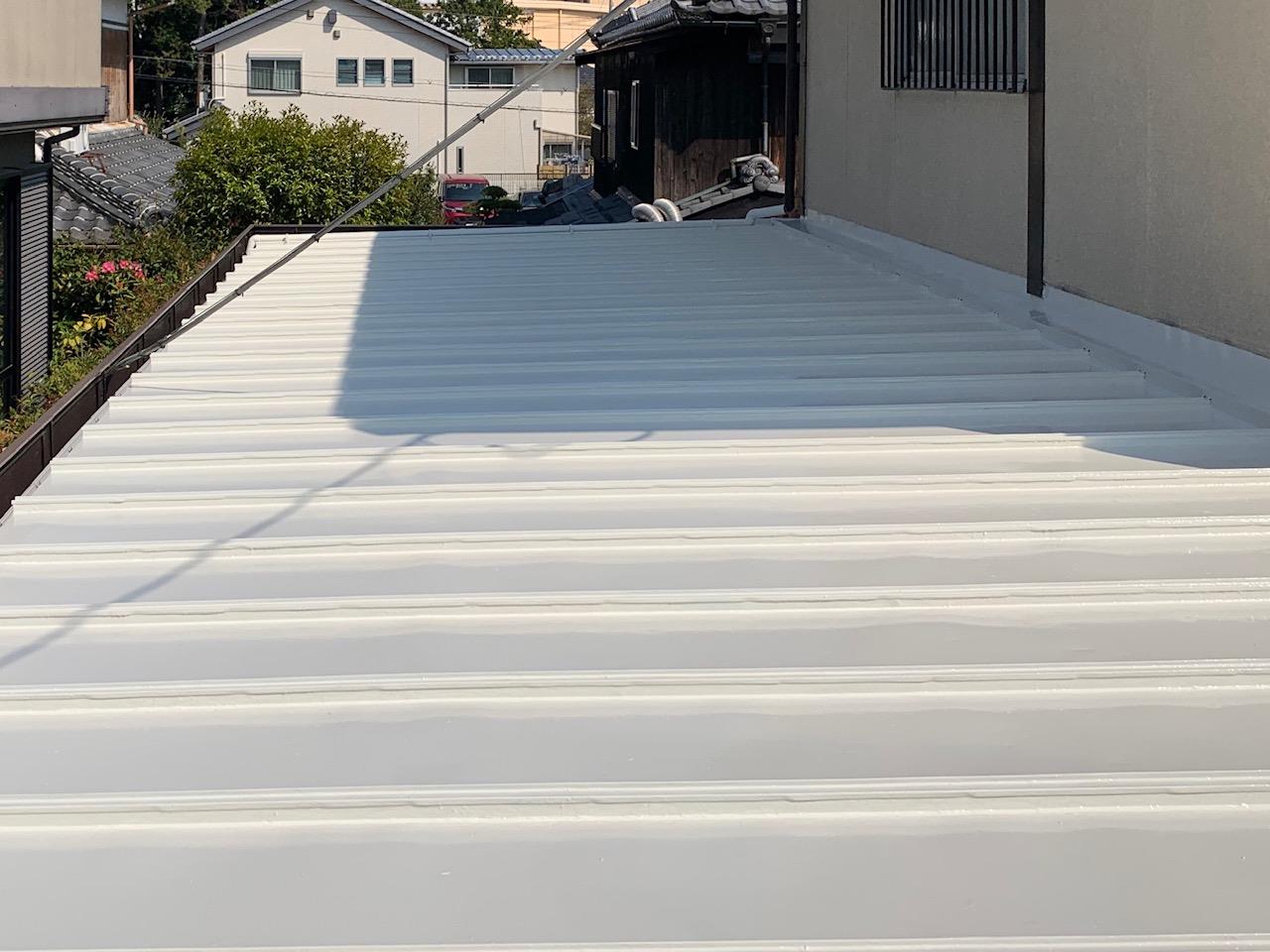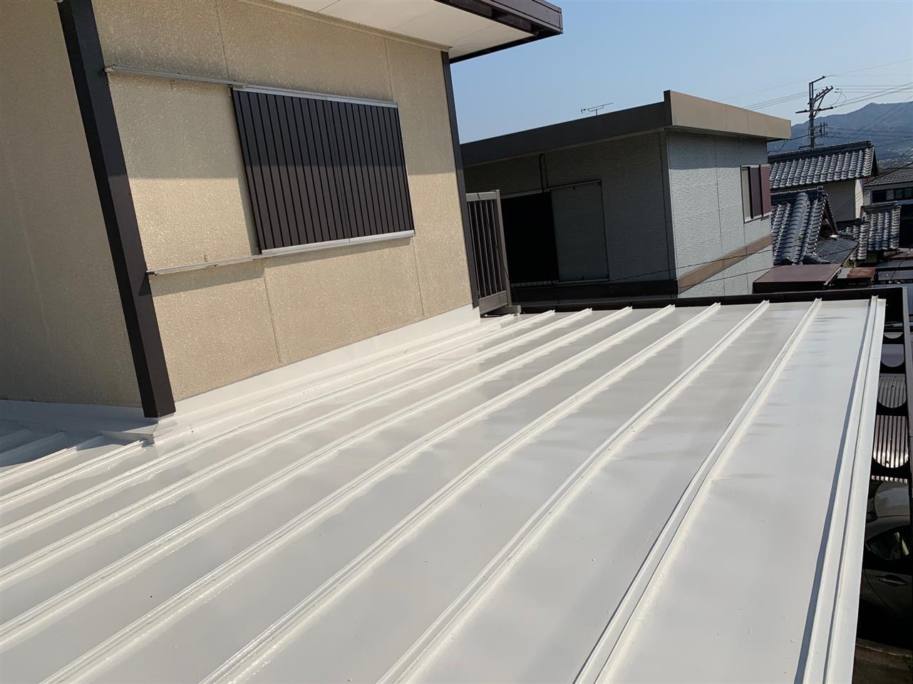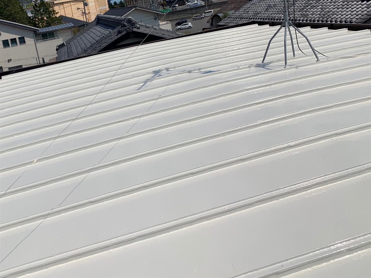 屋根のみの塗装リフォームで真夏の室内空間の温度を下げたいとご依頼ありました。ご予算のご都合で弊社オススメの遮熱塗料にて施工し、同時に外壁塗装の点検も行いました。(異常無し)今回はご主人様希望の明るい色合いを選択しました。再来年に壁塗り替えのお約束して頂きました。ご依頼ありがとうございます。~仕様材料~屋根塗装:遮熱シリコン塗料穴あき:防水テープ、コーキング補修
