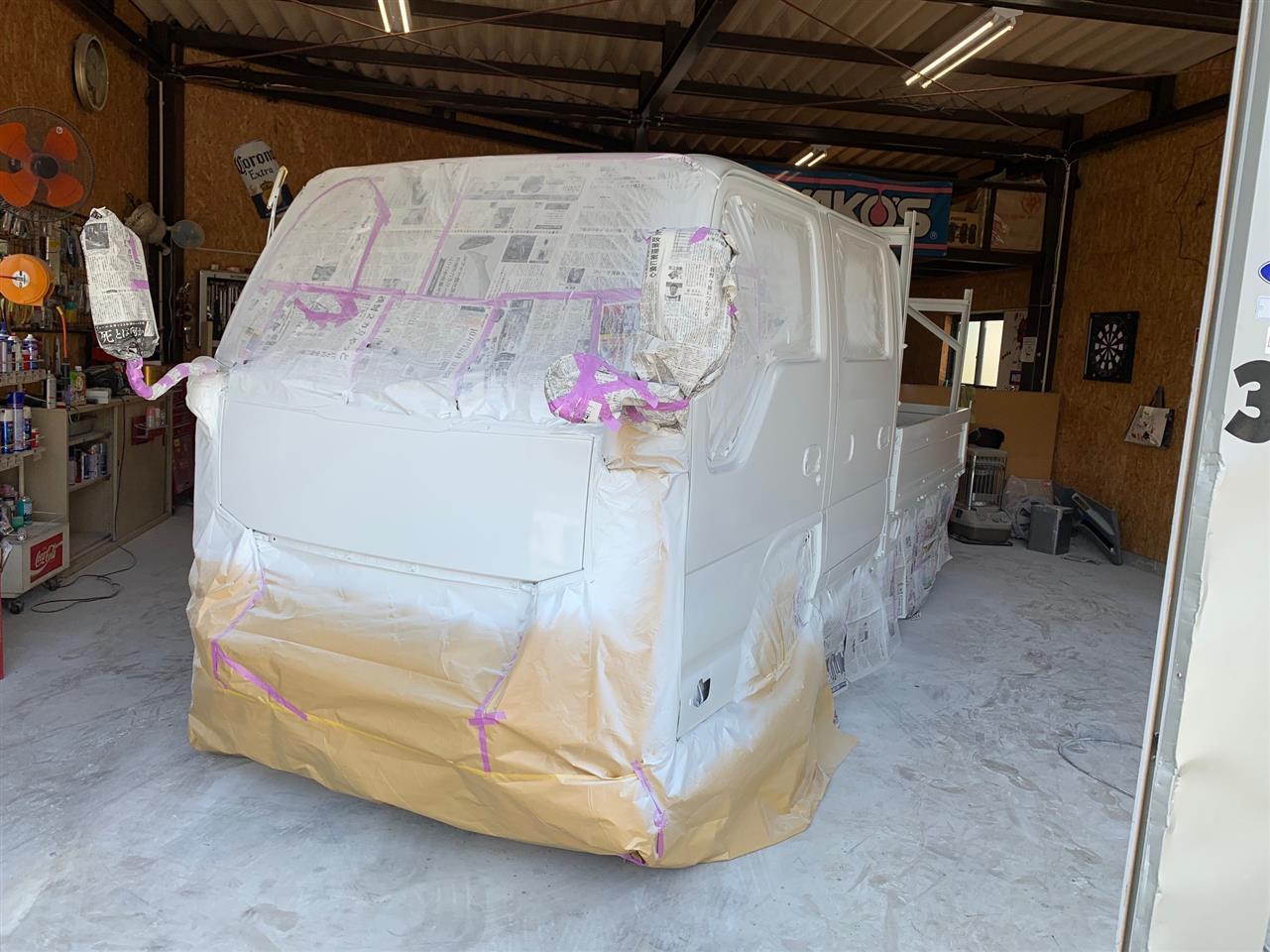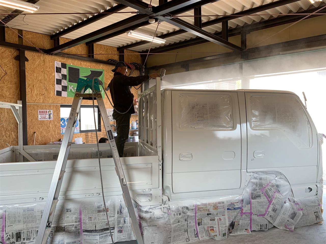♪♪走れ~走れ~いすゞのトラック~♪♪この度のGW休暇の作業です。新型コロナウィルスの影響でお出かけする事なく…暇な休暇となりました。皆様は如何お過ごしでしょうか?GW中は普段頑張ってる作業車のリフォーム?!(笑)全塗装と清掃を社員一同でしました。今回は2台のトラックを塗装!ナカシマ塗建の磨き抜かれた塗装技術でいい仕上りです。