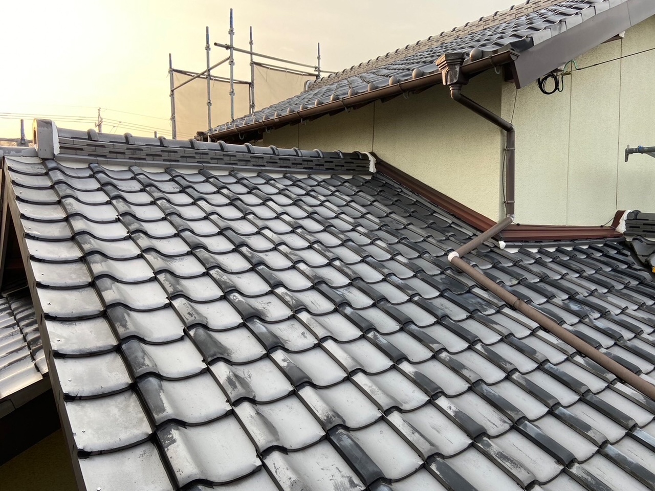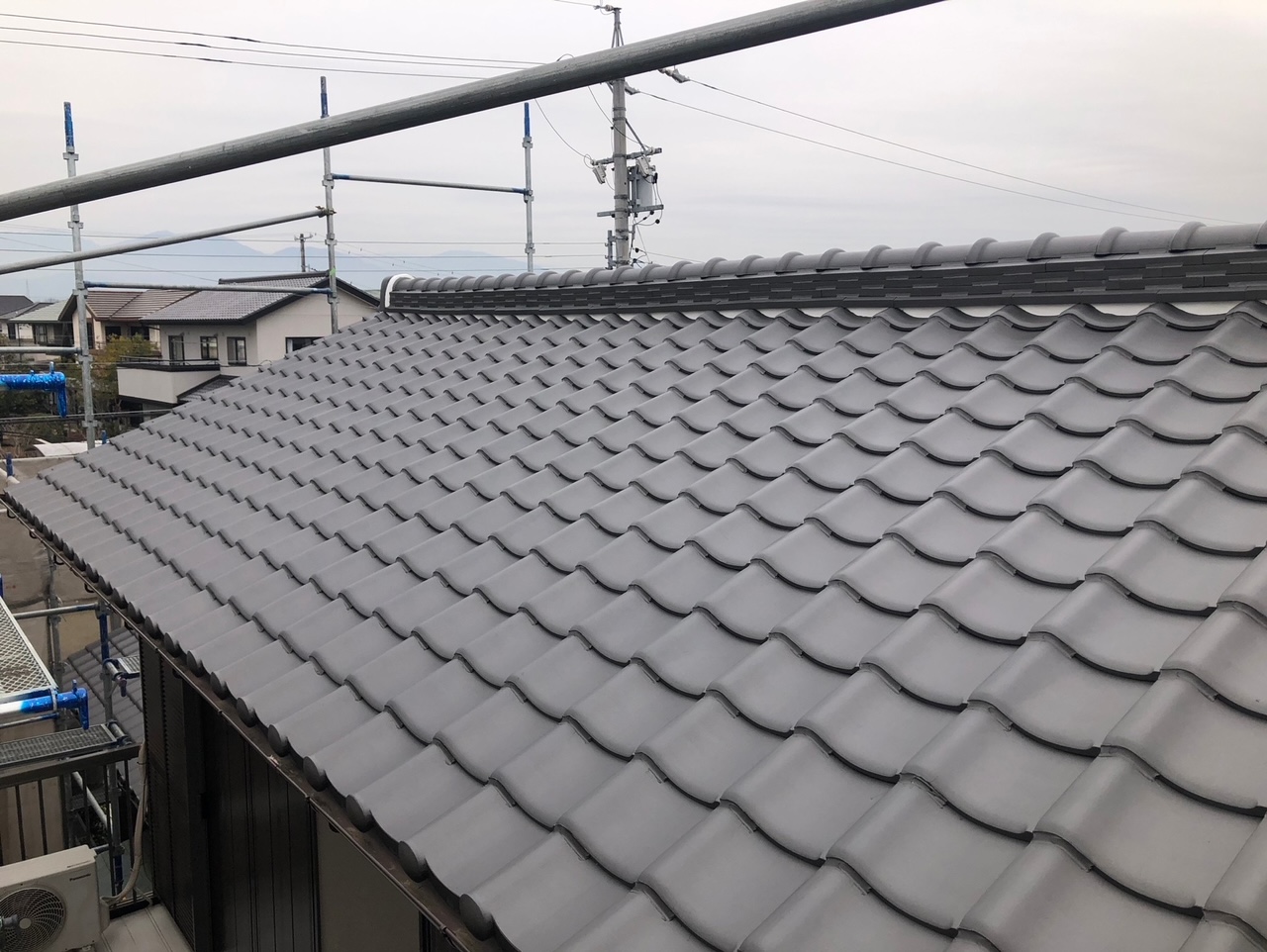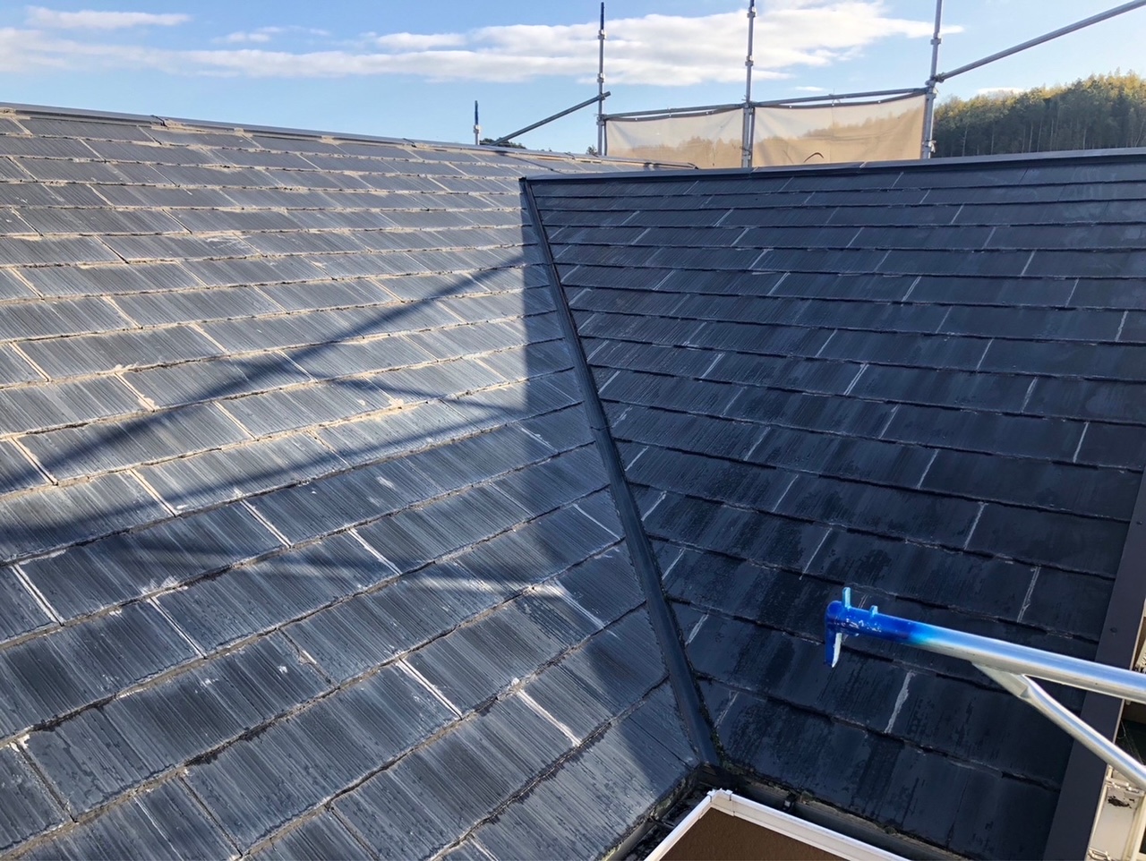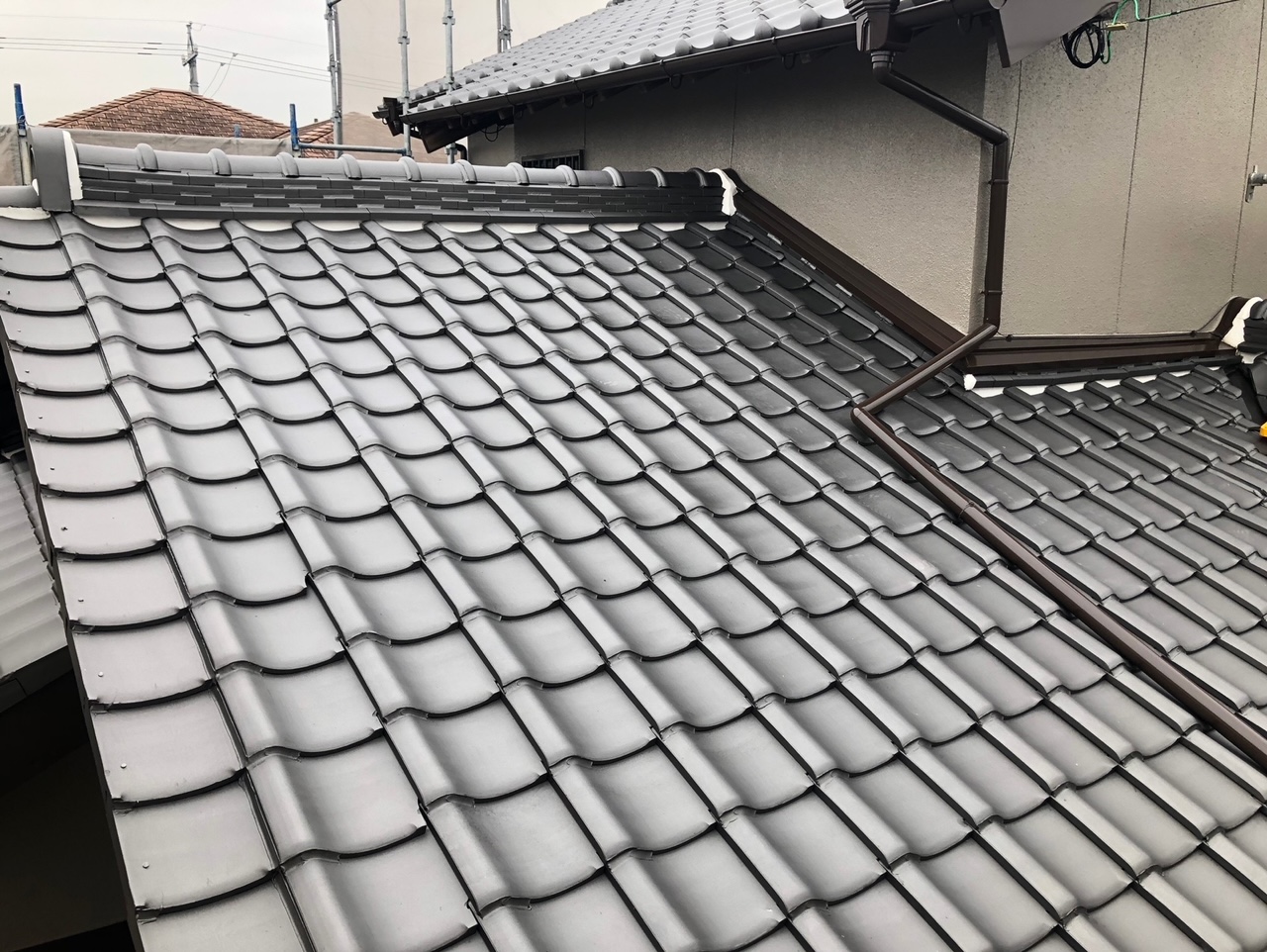 いつも大変お世話になっております。T様のご実家になります。これまでにT様には沢山の口コミをして頂き。数多く外壁塗装工事をさせて頂きました。今回は屋根塗装のみの工事になります。色ムラが出やすい塗料ですので吹き付けにて施工致しました。新品になったと言って頂き、T様も大変喜ばれていました。この度は塗装工事のご依頼誠にありがとうございます。~仕様材料~屋根塗装:いぶしコート漆喰:土佐漆喰